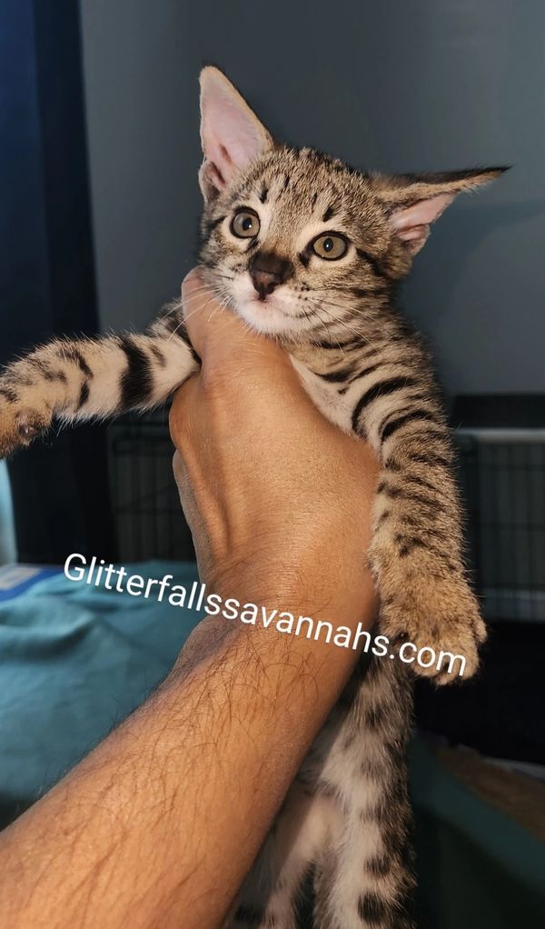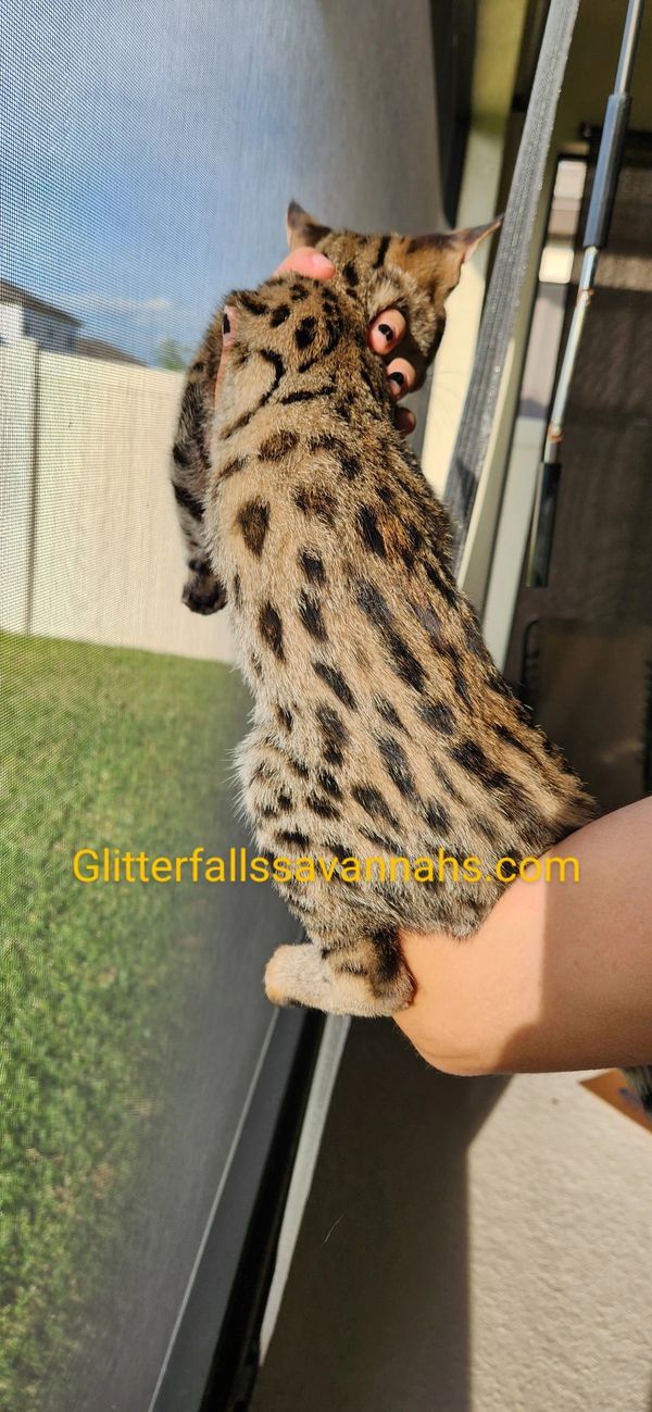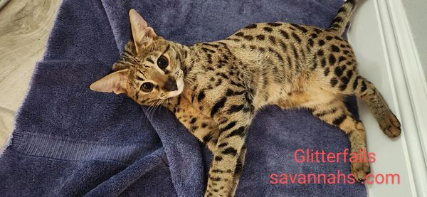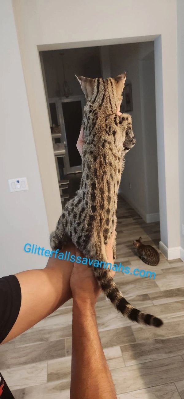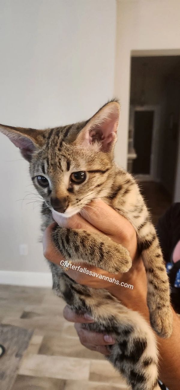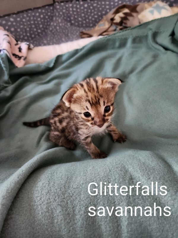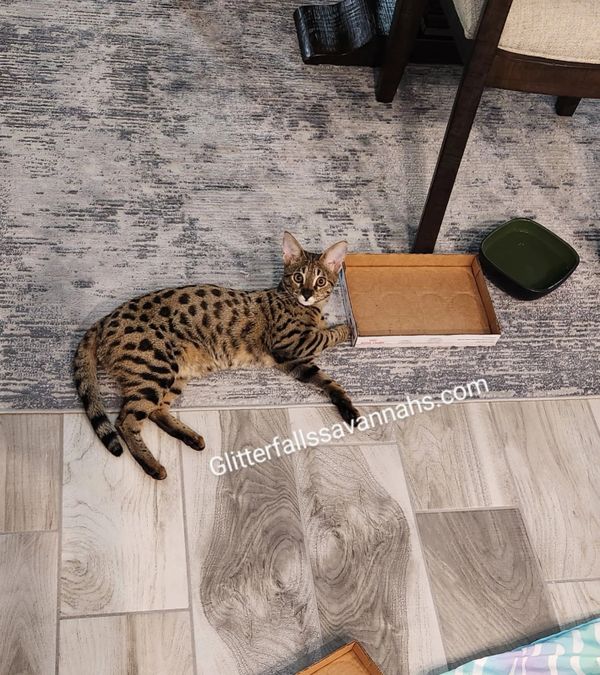 At Glitterfalls Savannahs, we believe that every kitten deserves to be happy, healthy and loved. We specialize in F2 savannah kittens.