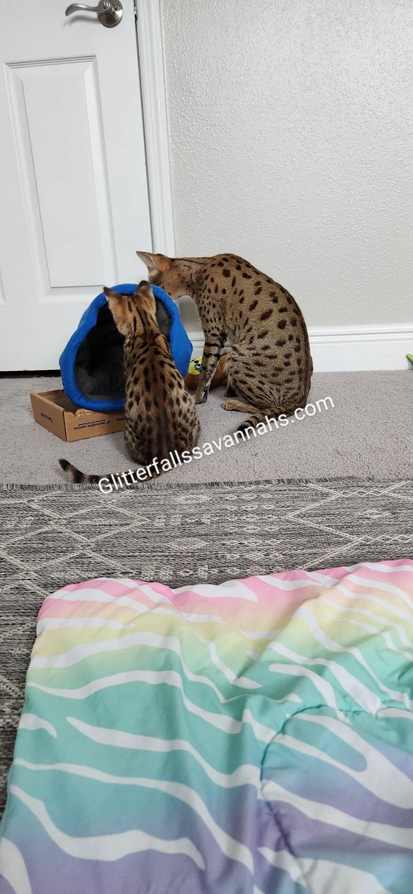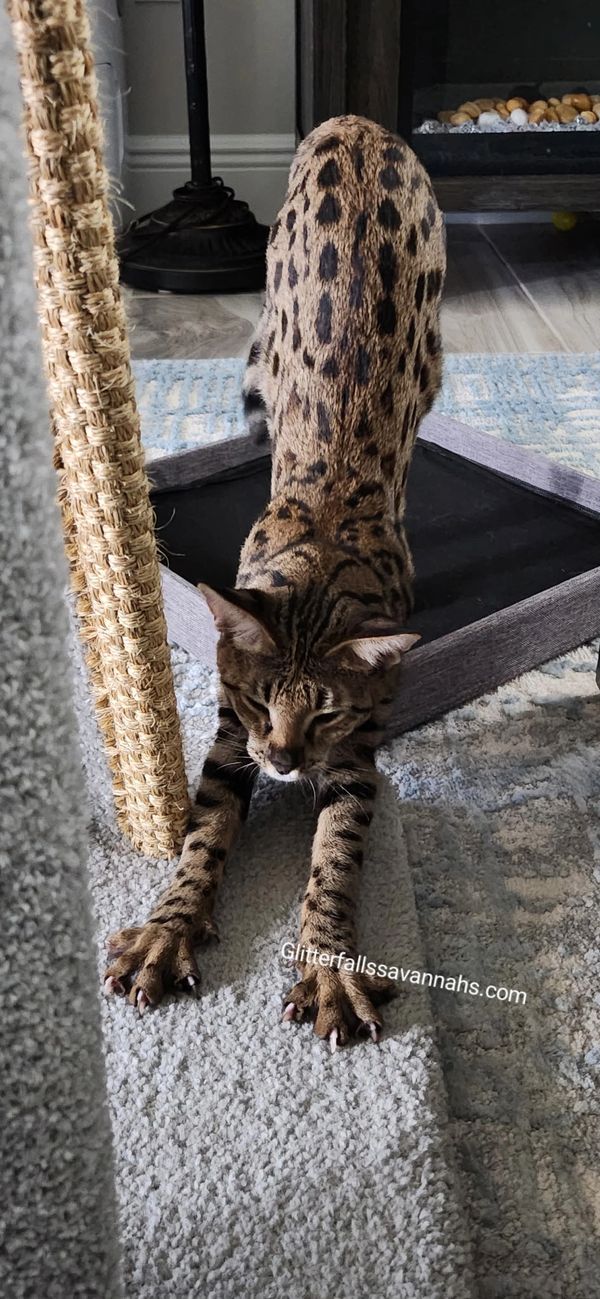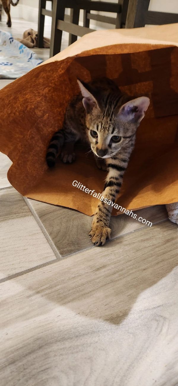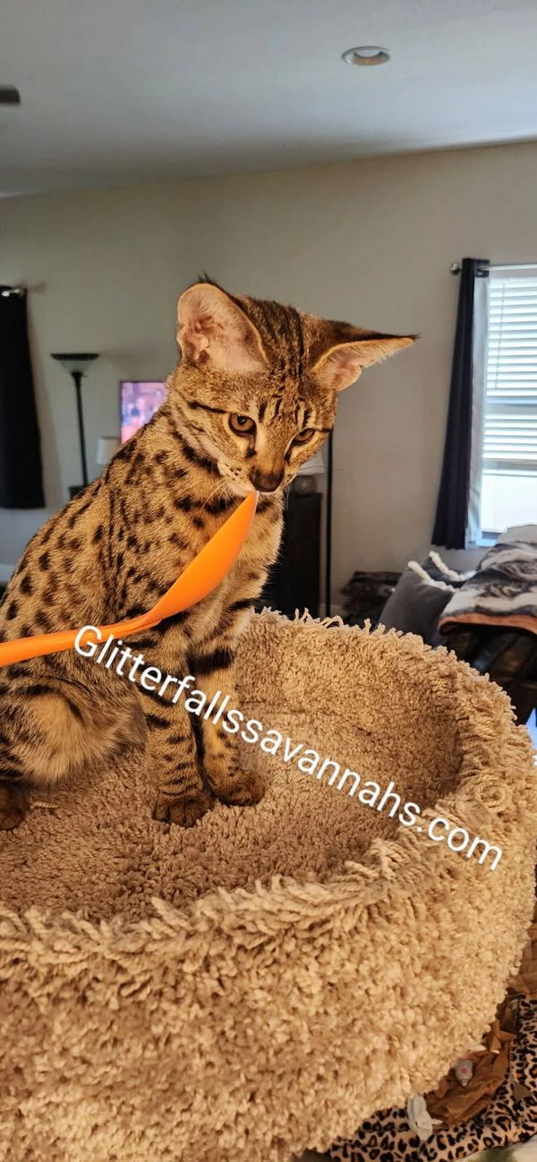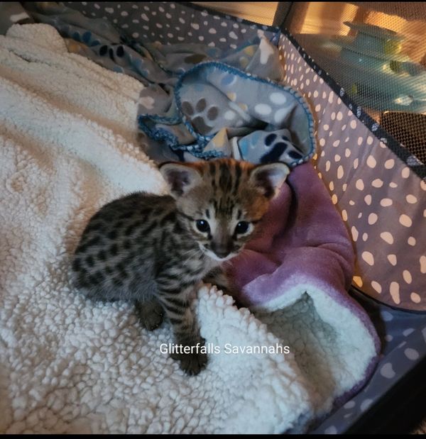 At Glitterfalls Savannahs, we believe that every kitten deserves to be happy, healthy and loved. We specialize in F2 savannah kittens.
